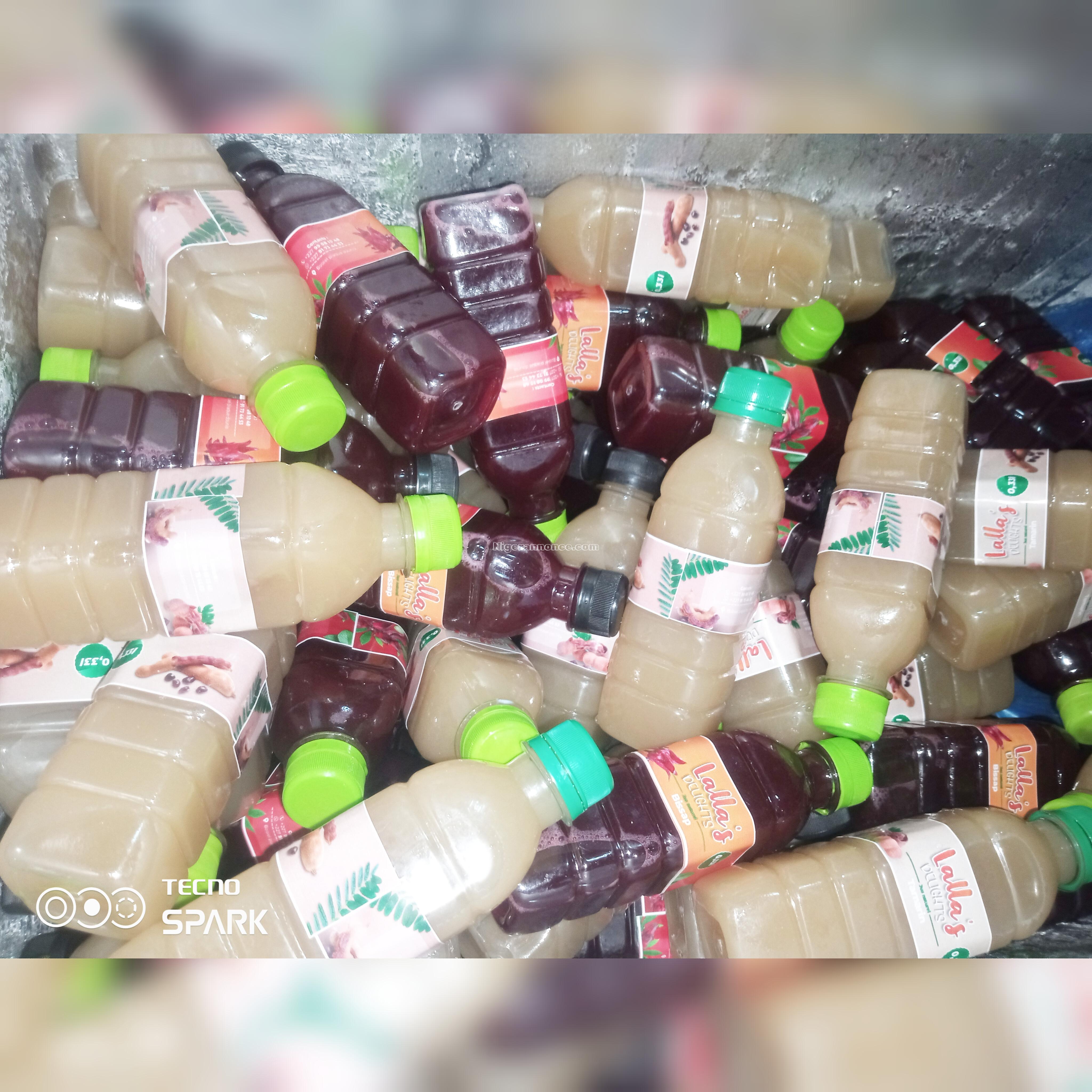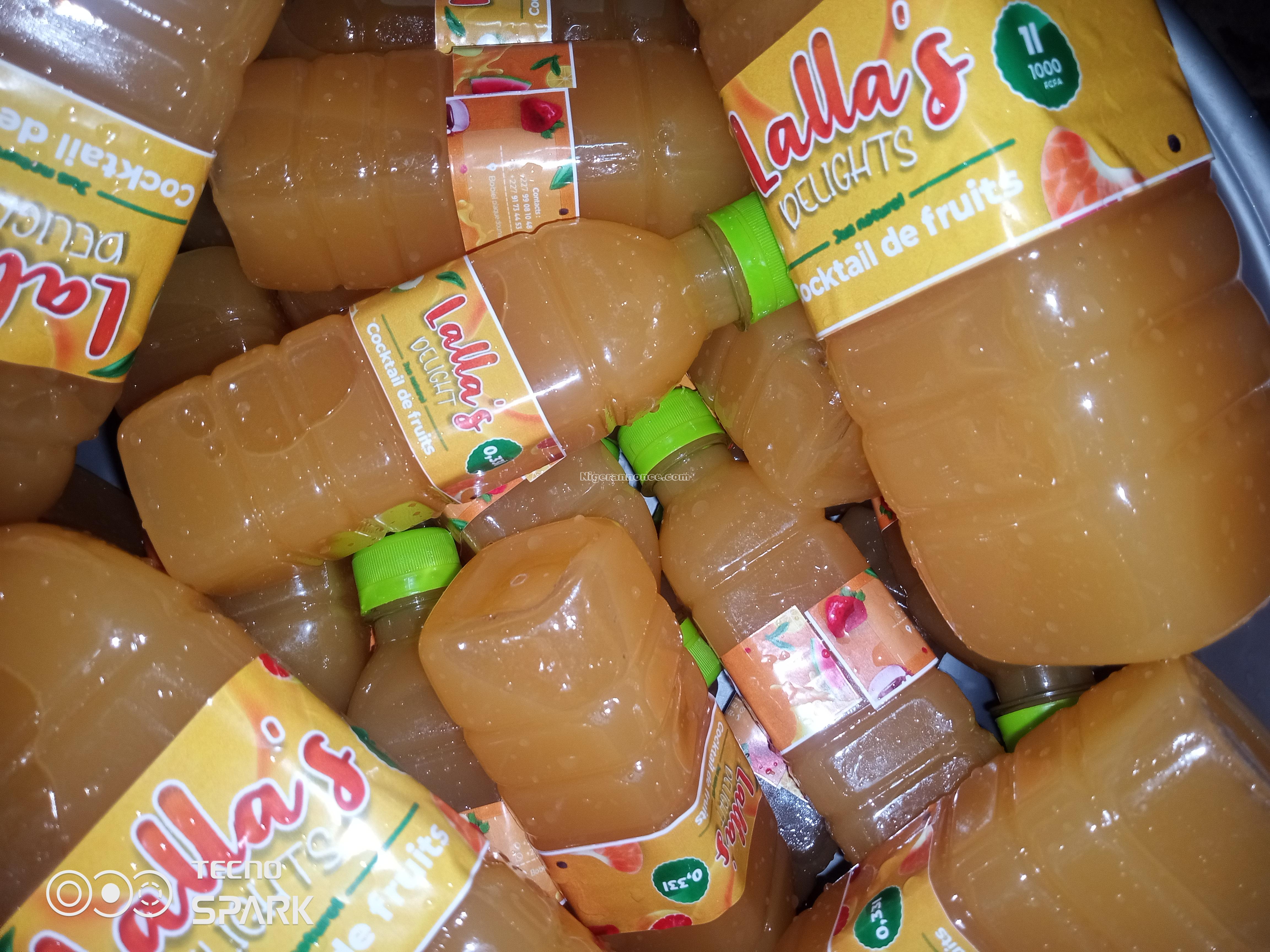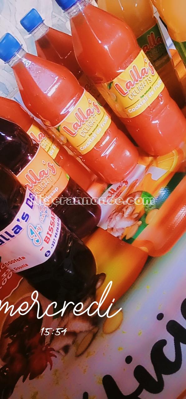 Jus naturels en gros pour vos événements dans des bidons de 0,33cl et en détails dans des bidons de 1 litre avec 5 différentes saveurs sur commande.
