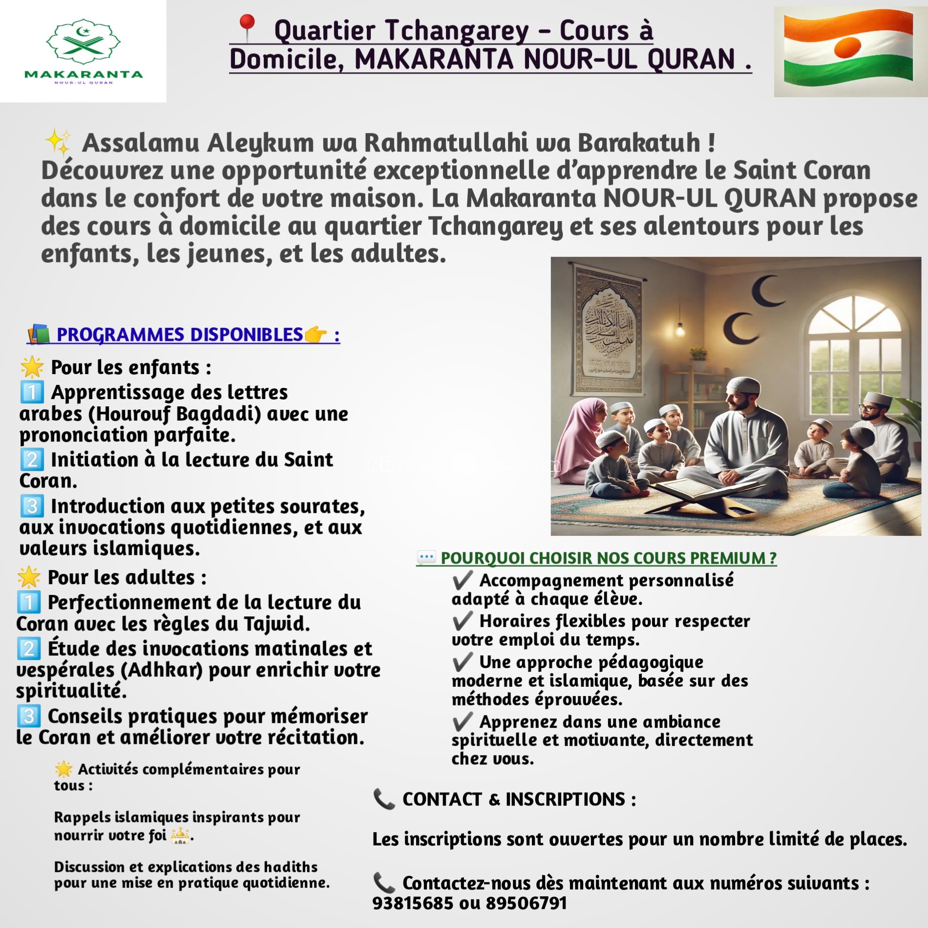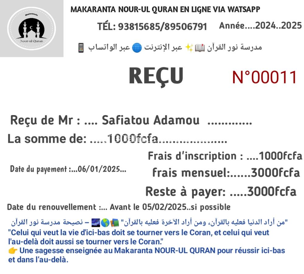 Formation makaranta NOUR-UL QURAN en ligne pour les débutants. Inscription 2000fcfa et fin du mois 4000fcfa.