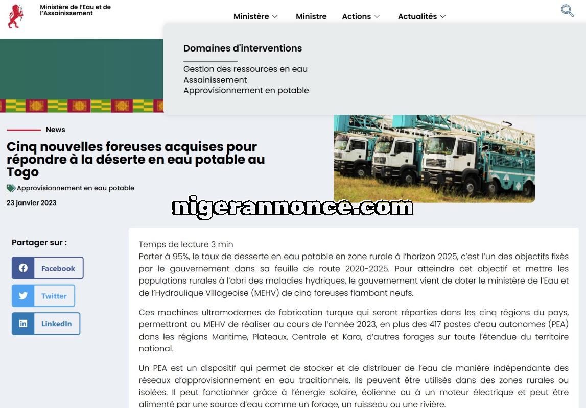 Opportunité d’investissement – Forage profond au Niger