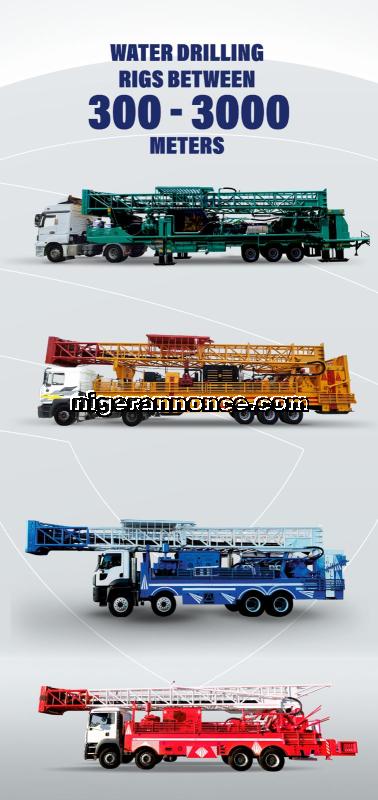 ACR Drilling propose des machines de forage lourd neuves, capables d’atteindre 300 à 3000 mètres, destinées aux projets industriels, miniers et agricoles. Ces équipements répondent à un besoin stratégique du marché nigérien en infrastructures de forage profond fiables.