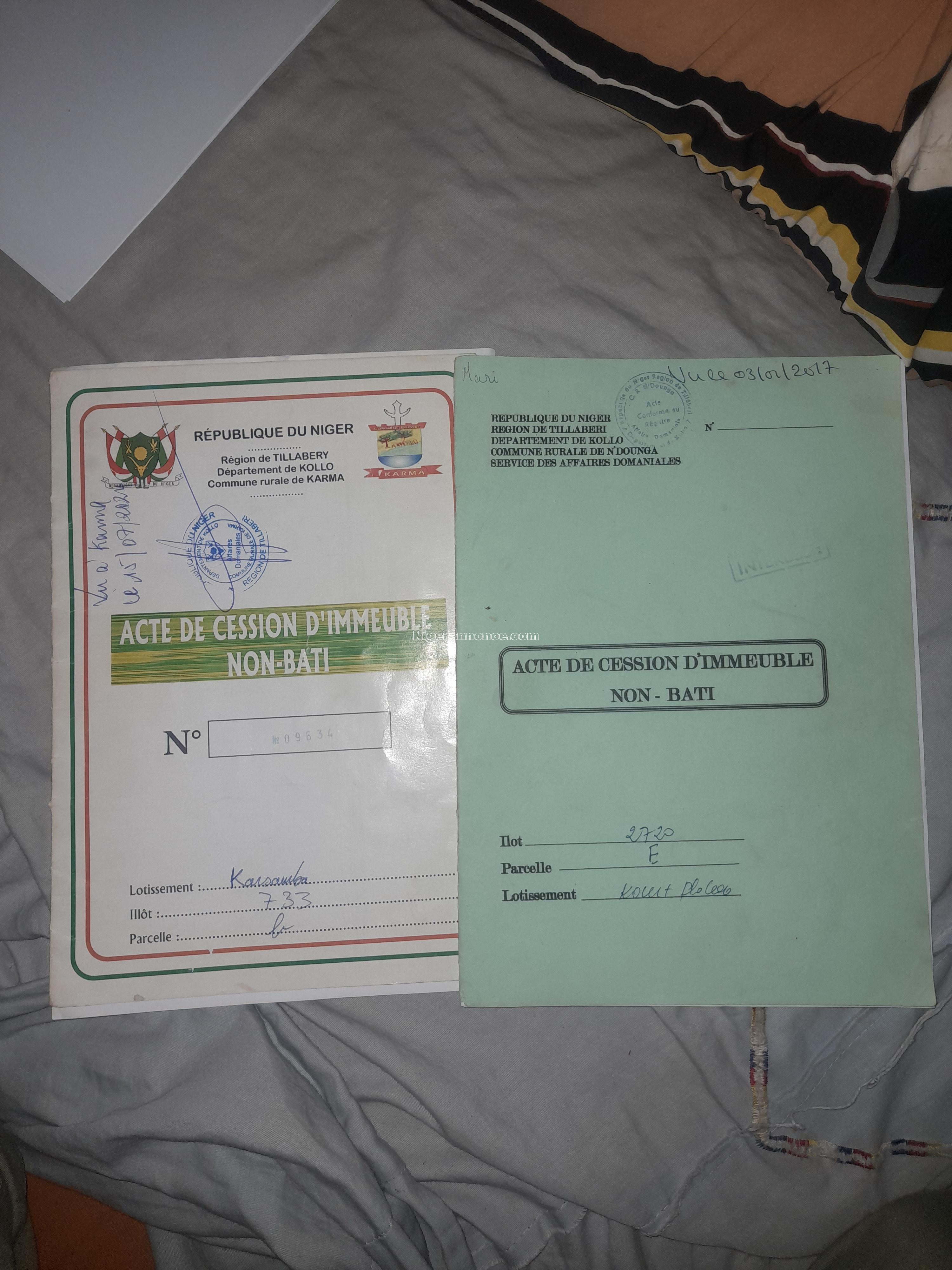 Mise en vente de deux terrains des 400m² ( Parcelle B, Illot 733) à Karsamba et ( Parcelle E, Illot 2720 ) à Koweït Plateau.
